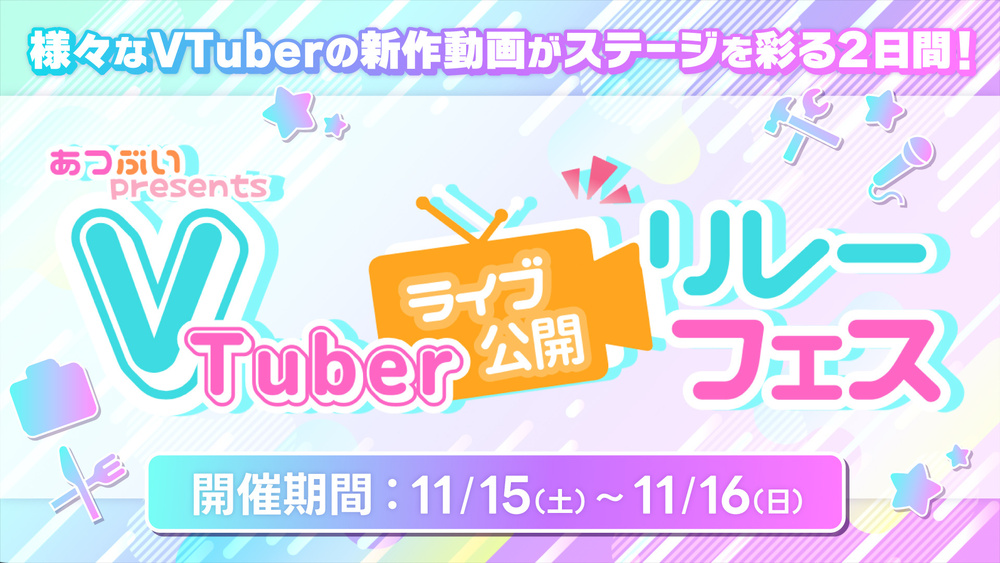 あつぶいpresents「Vtuberライブ公開リレーフェス」 SCHEDULE 2025/11/15(土) 19:00 - 2025/11/16(日) 00:00 ニコニコ動画 ニコニコインフォ URLをコピーする 報告する